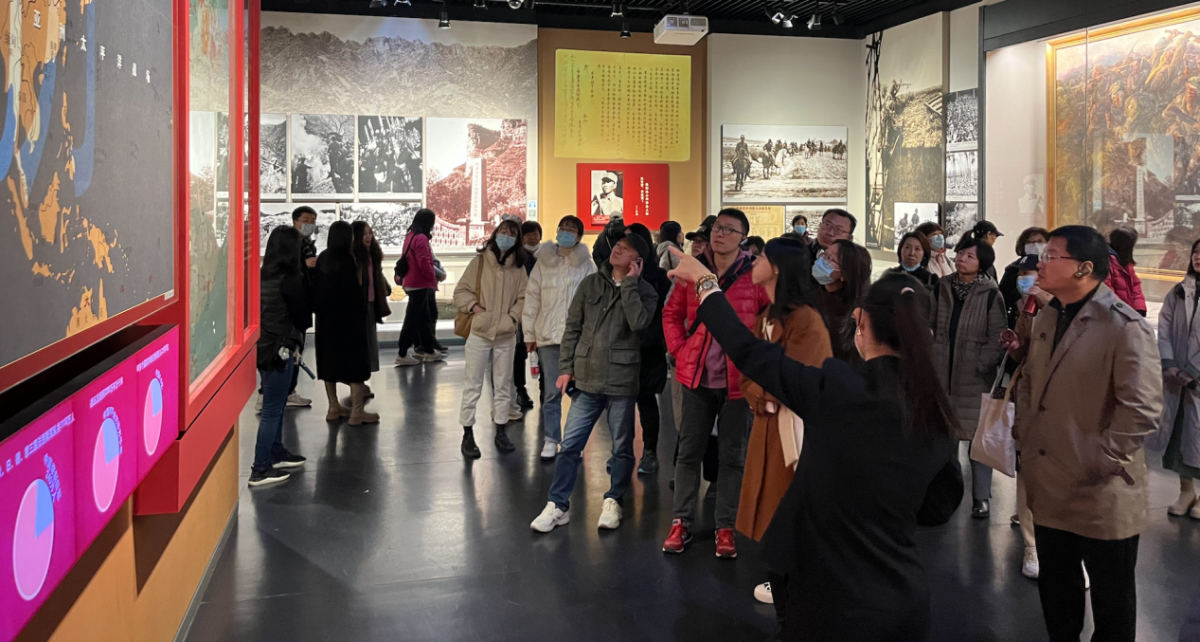 教职工在抗日战争纪念馆仔细聆听讲解员的介绍