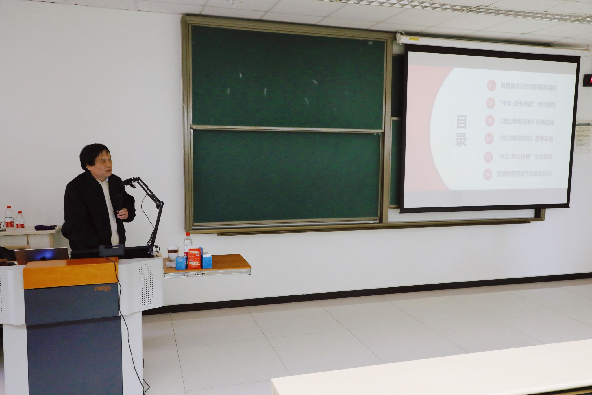 在教三楼200教室举办科研讲座。本次讲座特邀北京师范大学宋继华教授做了题为“教育数字化转型与‘中文+职业技能’生态体系建设”的专题讲座。讲座由91自拍