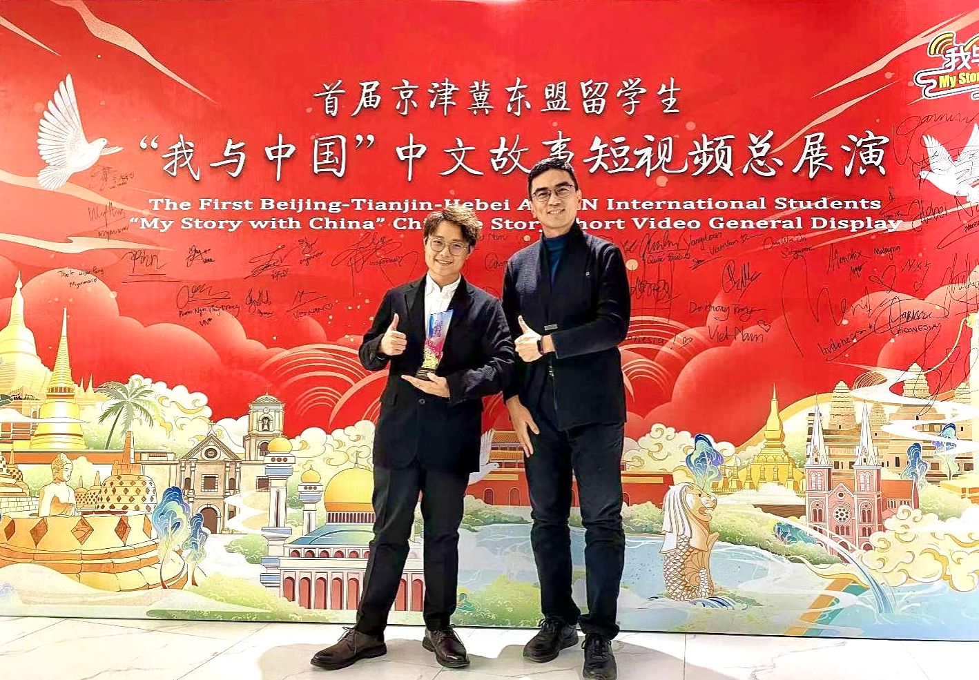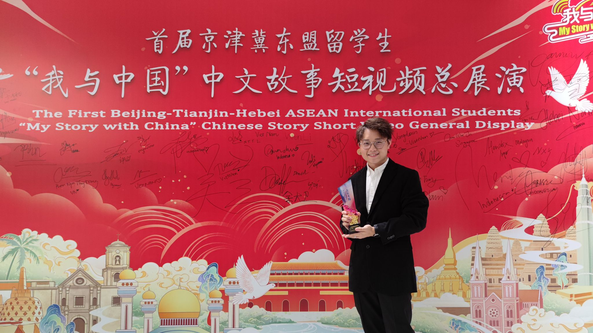 商务班的马来西亚同学王子航,在首届京津冀东盟国家留学生“我与中国”中文故事短视频比赛中喜获“青年才俊”奖。本次赛事吸引了来自62家推荐单位的3000余名中国与东盟国家青年踊跃参与,王子航同学自编、自导、自演的视频作品,以其生动的语言、活泼的画面讲述他与中国的不解之缘,打动了评委,从306件参赛作品中脱颖而出。