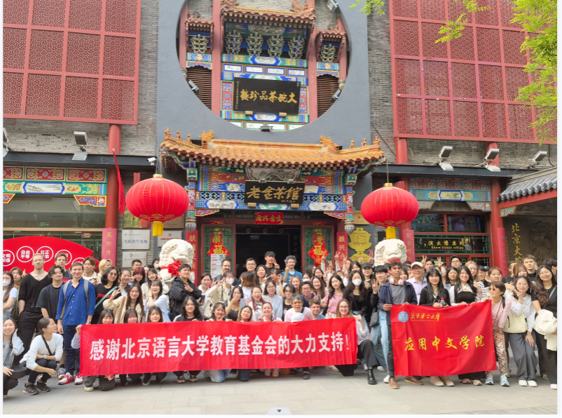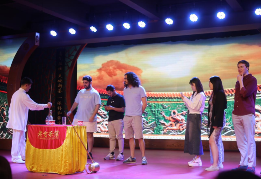 春夏之交的北京,百花盛开,风清日和。同学们愉快地享受了这场精彩纷呈的文化盛宴。同学们刚到茶馆,就被茶馆独特的文化氛围所吸引。老舍茶馆作为一个展示中国传统文化的重要场所,不仅有着古色古香的装饰和摆设,还融入了丰富的文化元素。同学们不仅品味到中国传统茶文化的魅力,同时感受到中国文化的博大精深。
