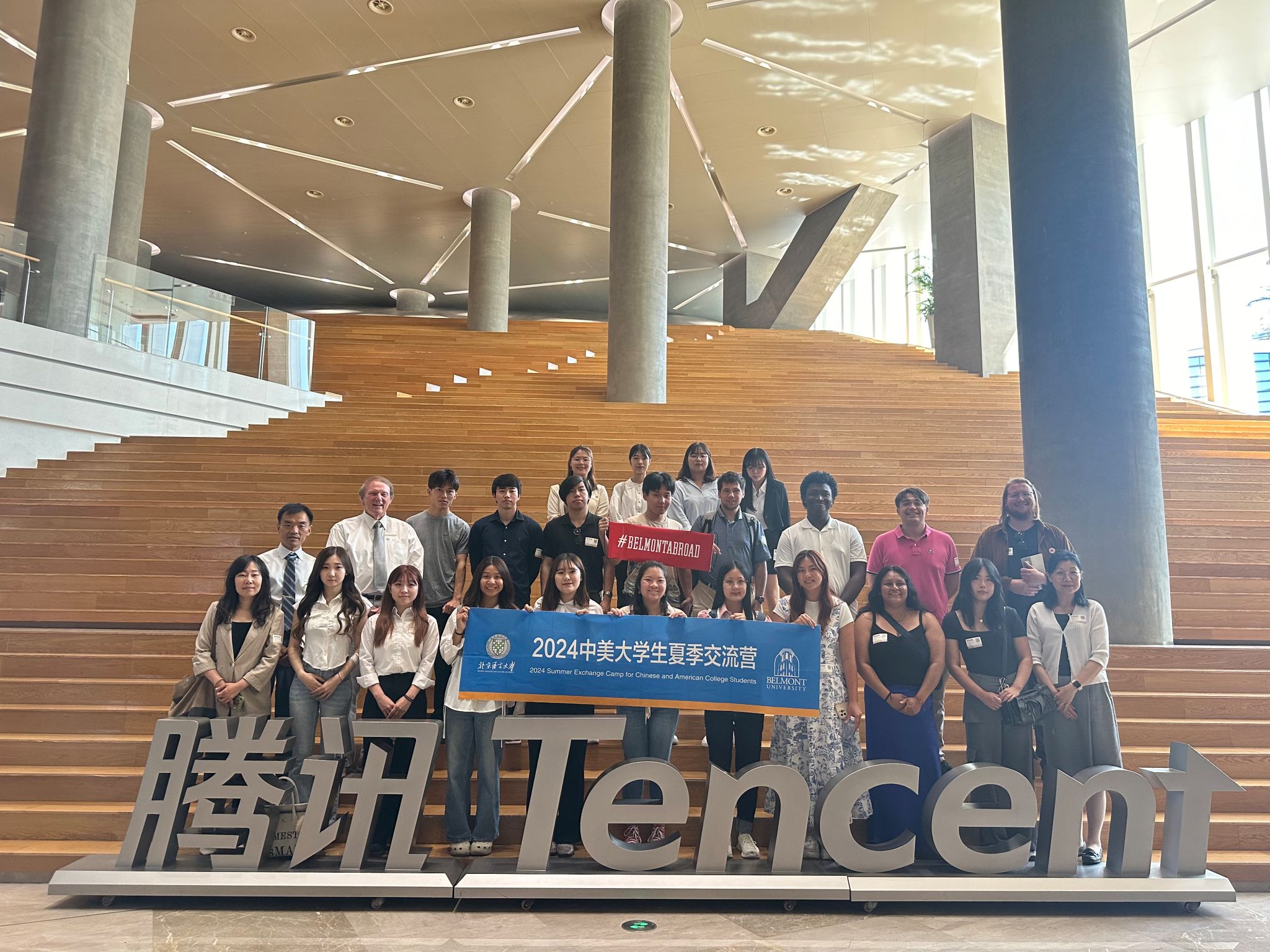 承办的2024年汉语桥项目“中国印象——中美青年交流营”,与美国贝尔蒙特大学(Belmont University)研学团的成员们一起赴腾讯公司总部参观。
