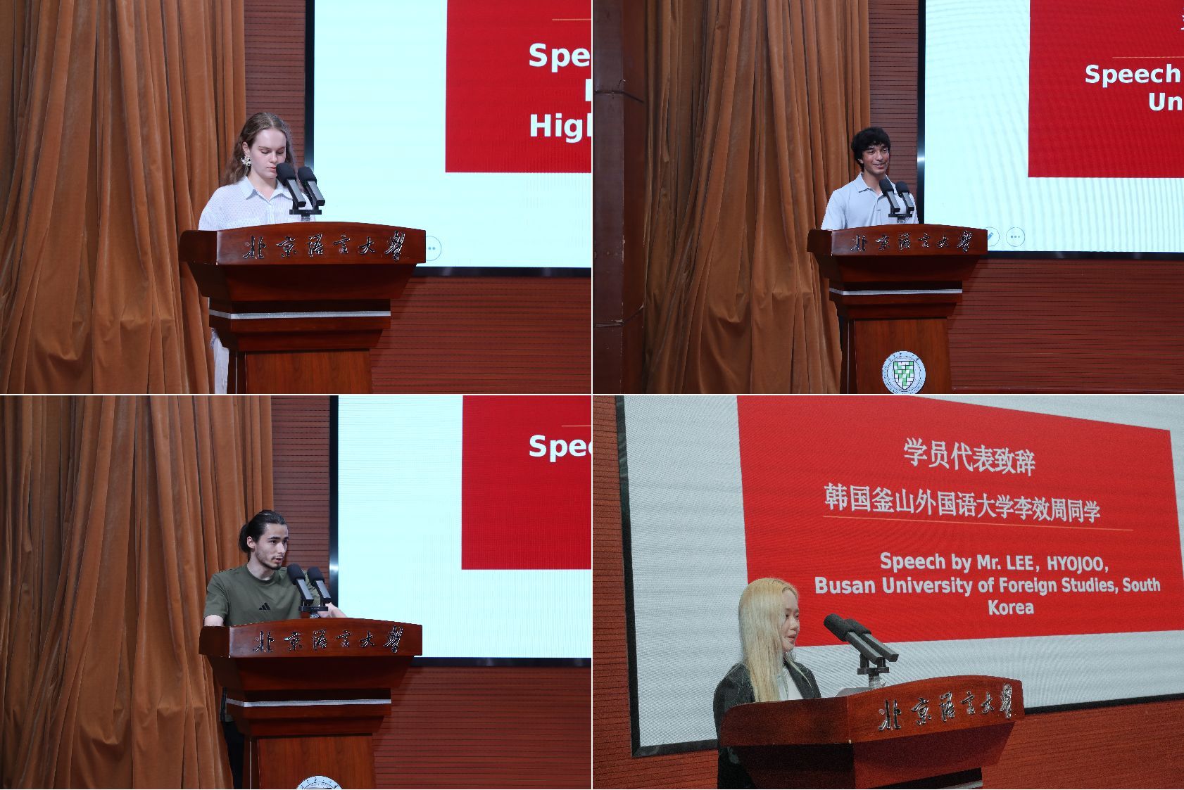 随后,法国洛林大学的瓦伦丁·莱尔(Valentin Lair)同学、美国华盛顿大学的王安(Rowan Anant Asgaonkar)同学、韩国釜山外国语大学的李效周(Hyojoo Lee)同学以及俄罗斯高等经济大学的苏子语(Sofia Serebriakova)同学作为学员代表先后上台交流发言。他们用中文分享了自己的体会和感想,对91自拍