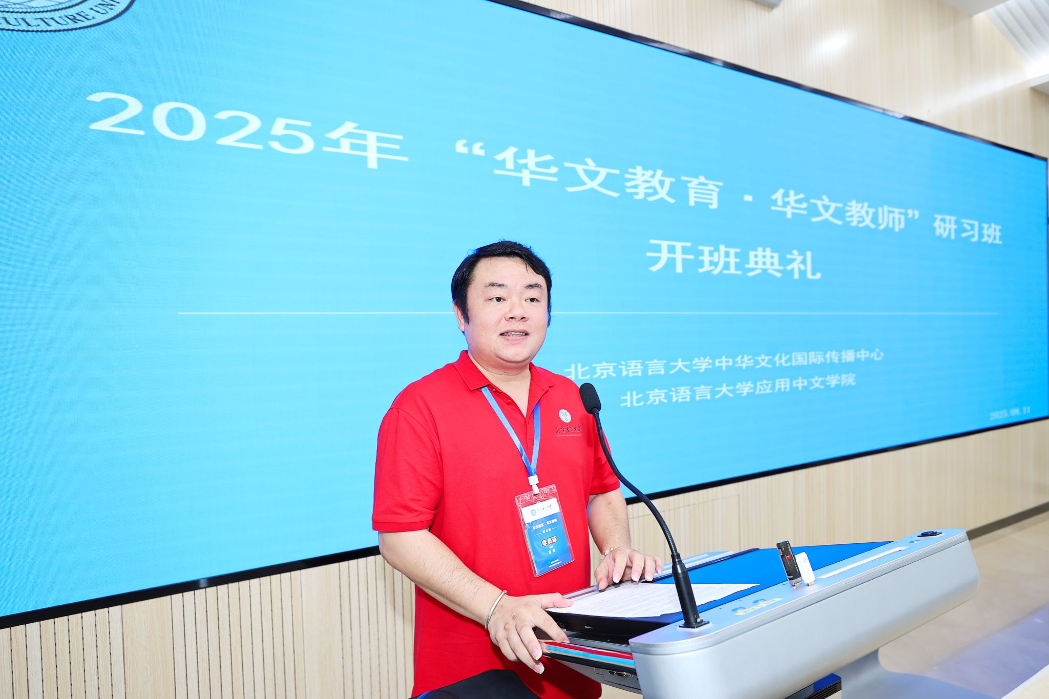 开班式上,黄益方副校长发表致辞,向海外华文教育工作者致以热烈欢迎和真挚祝福,并向北京市侨办对学校华文教育事业的关心支持表示衷心感谢。他指出,海外华文教育是中华民族在海外的“留根工程”、“希望工程”,是薪传民族文化、促进海外侨胞与祖国的情感联系的关键环节,当今世界正经历百年未有之大变局,华文教育面临着广阔的发展前景,需要华文教育不断自我革新,适应时代发展要求,提升国际传播能力和影响力。黄益方副校长期待学员们在本次研习活动中乐学善思、在未来的工作中笃行日新,立足五千多年中华文明,依托中国发展的生动实践,全面阐述中国的文明观、发展观和世界观,帮助世界各国人民了解一个真实、立体、全面的中国,深化文明交流互鉴,携手书写海外华文教育事业新的辉煌篇章。