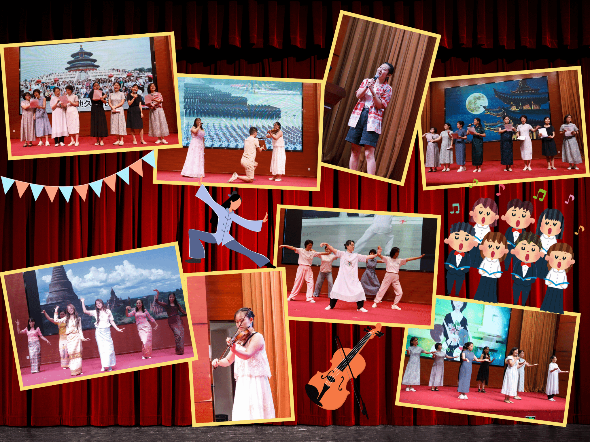 典礼现场更洋溢着温情与活力——学员们精心准备的文艺表演为本次研习画上温馨句点。朗诵《春江花月夜》以悠扬声韵开启表演篇章,尽显中华诗词之美;手势舞《听我说谢谢你》用灵动动作传递对授课教师、项目助管的感恩之情;小提琴独奏《查尔达什舞曲》、杨式太极拳表演、舞蹈《敏格喇吧》轮番登场,展现出新生代华文教师的多才多艺;歌曲《隐形的翅膀》则唱出了大家对华文教育事业的执着与热爱。当《友谊地久天长》的旋律响起,台上台下齐声高歌,十几天里凝结的深厚情谊在此刻升华;最终,典礼在歌曲串烧《中国,我爱你》的激昂旋律中落下帷幕,学员们纷纷表示,将带着此次研习的收获与使命,在海外华文教育岗位上积极作为,为中华文化国际传播贡献力量。