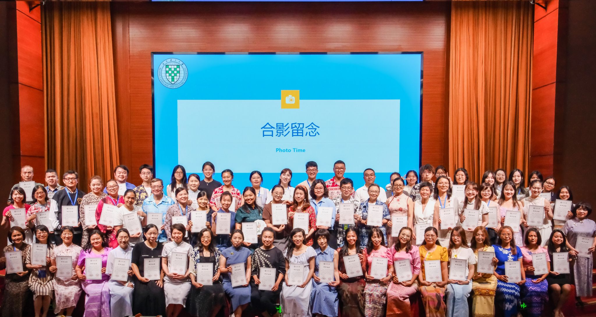 副院长朱文文,项目组教师代表、助管,以及来自美国、德国、英国等22个国家的80名华文教师齐聚结业典礼,共议研学时光,分享成长收获,为本次研习画上圆满句号。