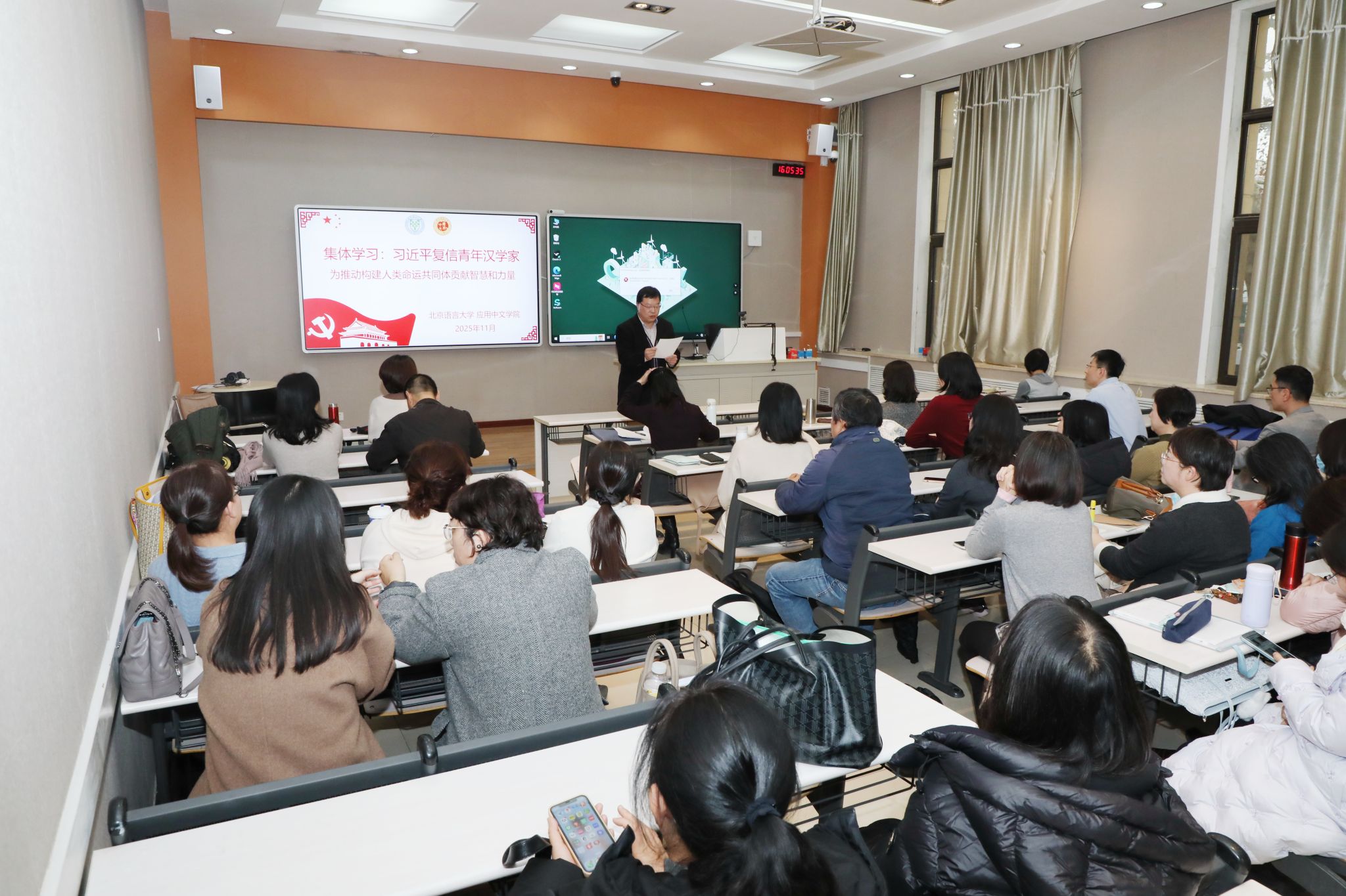 党委高度重视、迅速行动,分别于11月26日、12月1日两次专题组织学习活动。学院党委书记周鑫带领学院领导班子、全院教职工及中外学生代表,系统学习领会习近平总书记给青年汉学家回信的核心要义与精神实质,号召广大师生将复信精神转化为实际行动,在汉语国际教育与跨文化交流中勇担使命,为推动构建人类命运共同体贡献智慧与力量。