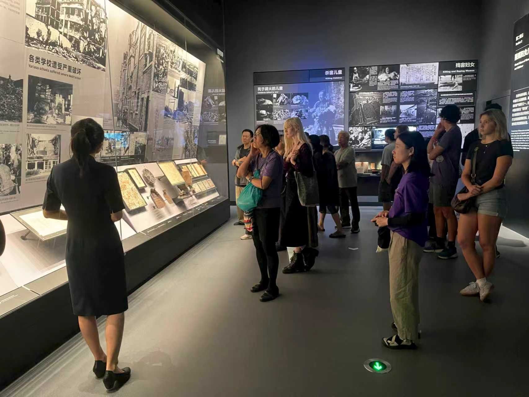 党委副书记白浩亲自带队,组织学院中研党员代表和国际学生共同前往中国人民抗日战争纪念馆参与活动。值得一提的是,本次参观的讲解员是学院校友会秘书长、北京市“三八红旗手”徐莹,她以专业的讲解和深厚的家国情怀,为中外学生深入解读抗战历史提供了独特的视角和深刻的启迪。中美俄三国青年在讲解员徐莹校友的引领下,通过参观馆藏文物、观看历史影像、开展深度访谈等形式,结合自身经历分享对“和平”的理解,实现了跨文化对话与情感共鸣。这种“专业策划+青年共创”的模式,既保留了青年表达的原生态,又提升了传播内容的质感。