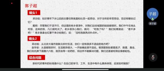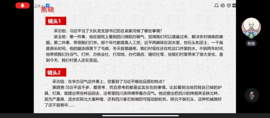 接着,五位同学就阅读时感触颇深的文章片段,结合自身经历和体悟,结合《团员和青年主题教育思考研讨重点内容参考》,分享了自己在阅读《习近平的七年知青岁月》时的心得体会。