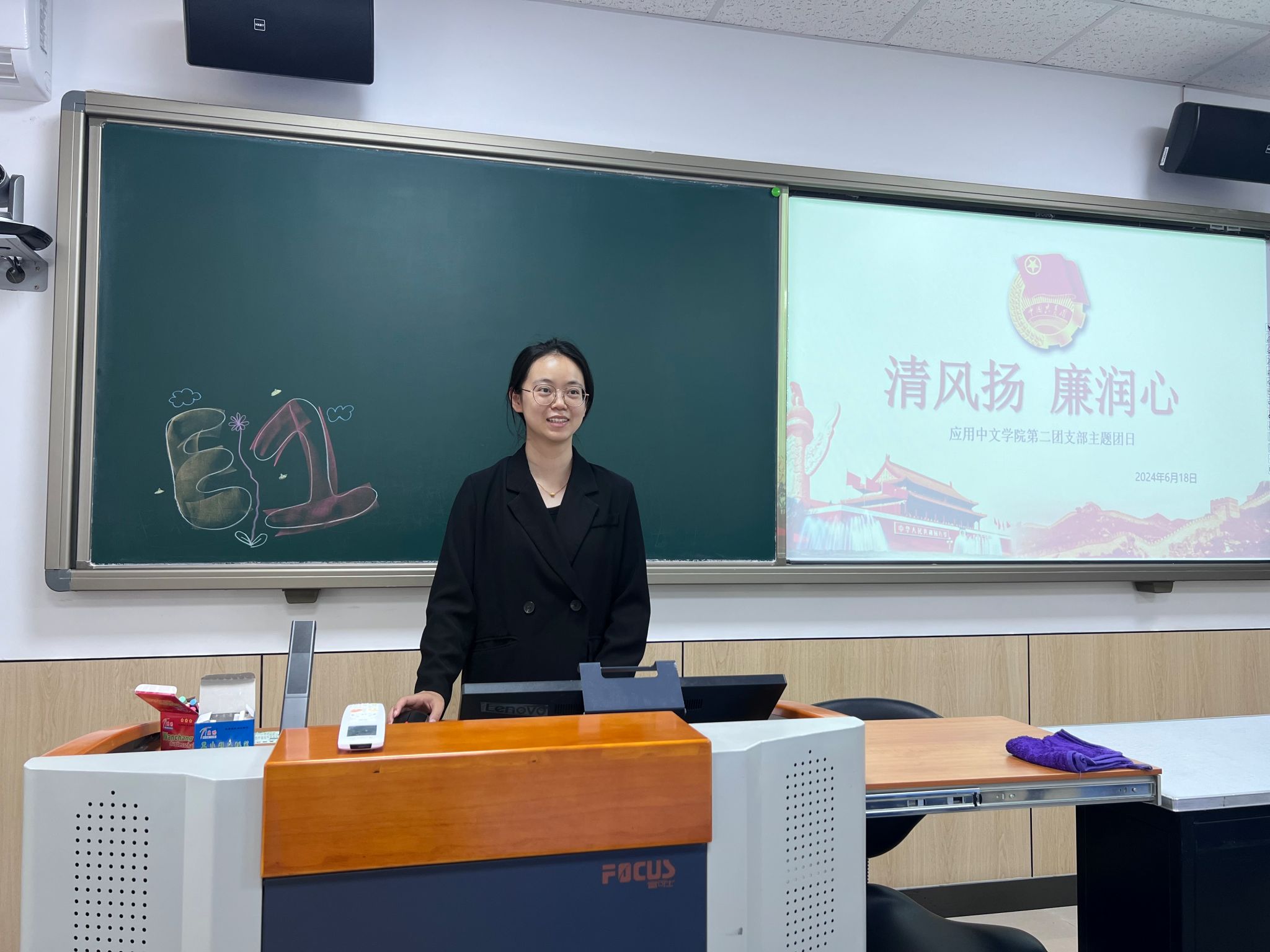 第二团支部精心策划了一场以“清风扬,廉润心”为主题的线上线下结合团日活动。此次活动在团支书田晓妍同学的主持下顺利展开,学院党委副书记、团总支书记白浩和辅导员冷美雨老师亲临指导。本次活动旨在通过新颖的教育方式,深化全体师生对廉洁自律的认知,强化防腐拒变的思想根基。