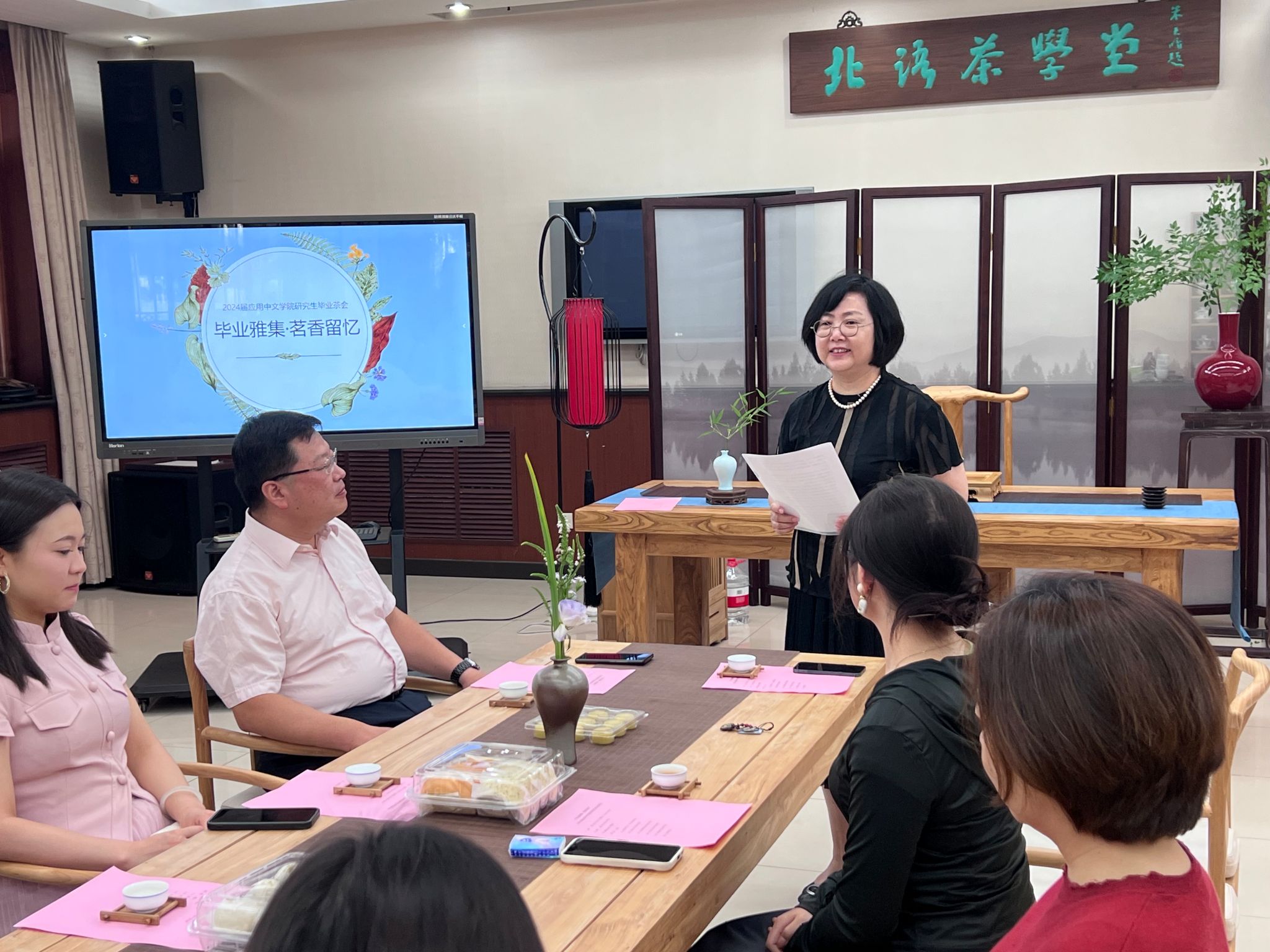 于2024年6月25日举办了一场题为“毕业雅集·茗香留忆”的研究生毕业茶话会。苏英霞院长、周鑫书记、白浩副书记、朱文文副院长和辅导员冷美雨老师等学院领导老师出席。活动由学院团总支精心策划,为即将开启新生活的2024届毕业生们送上美好祝愿。