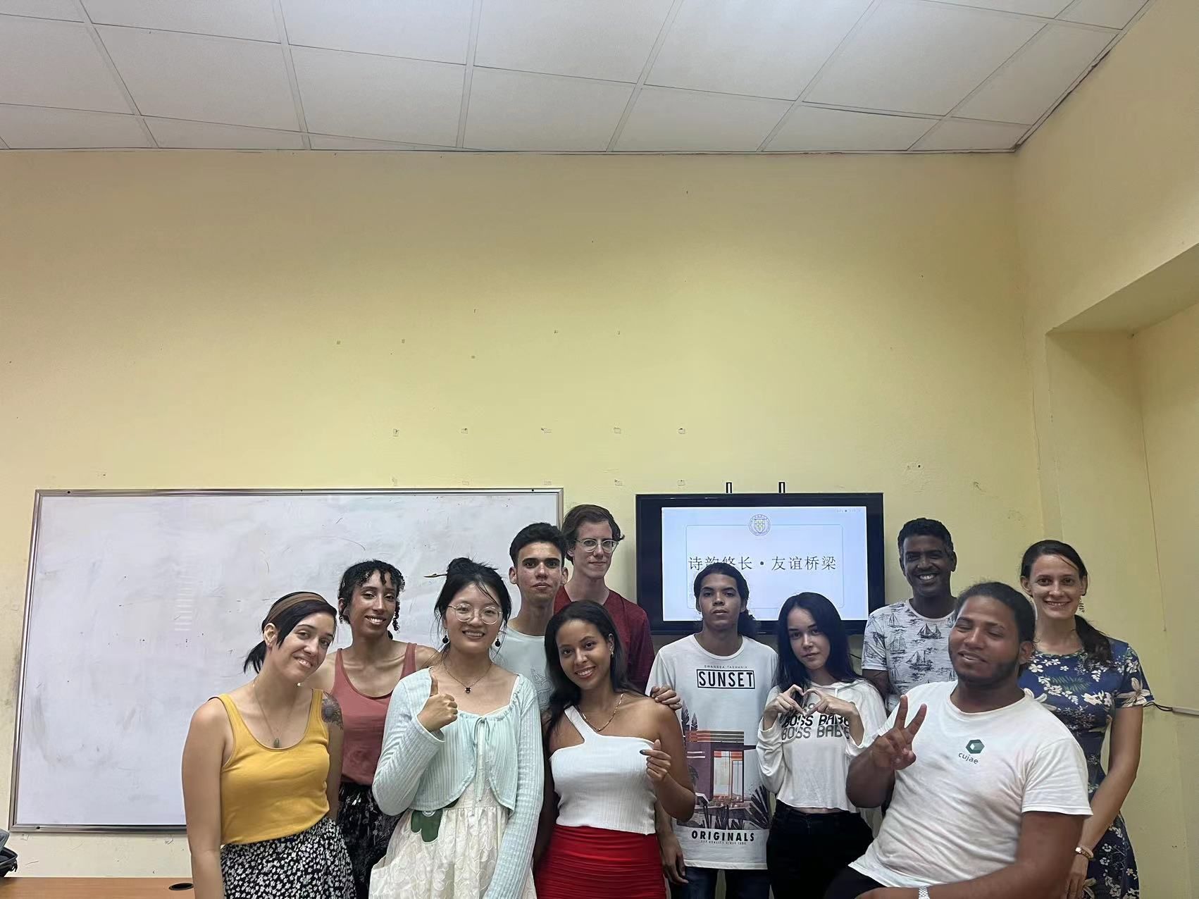 “诗韵悠长·友谊桥梁”暑期社会实践团队走进古巴哈瓦那大学孔子学院,为古巴学生带来了中华诗词文化的盛宴,开启了他们的中华诗词文化之旅。按照前期计划,该社会实践团队的队长是苏晗瑜同学,队员分别由在古巴的翟淑芳、罗马尼亚的刘歌和泰国的卢泽萍组成,她们都是作为汉语志愿者在海外工作。