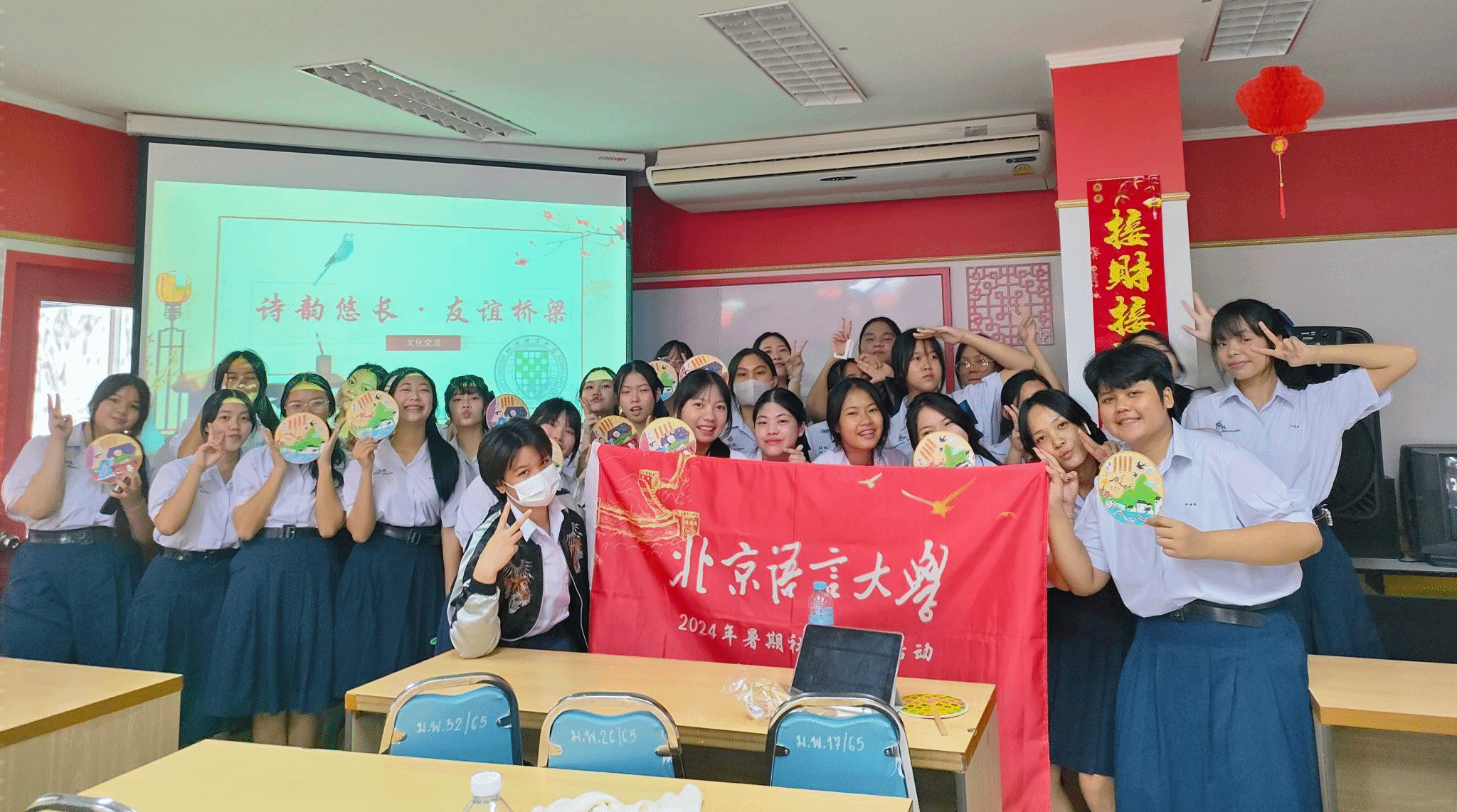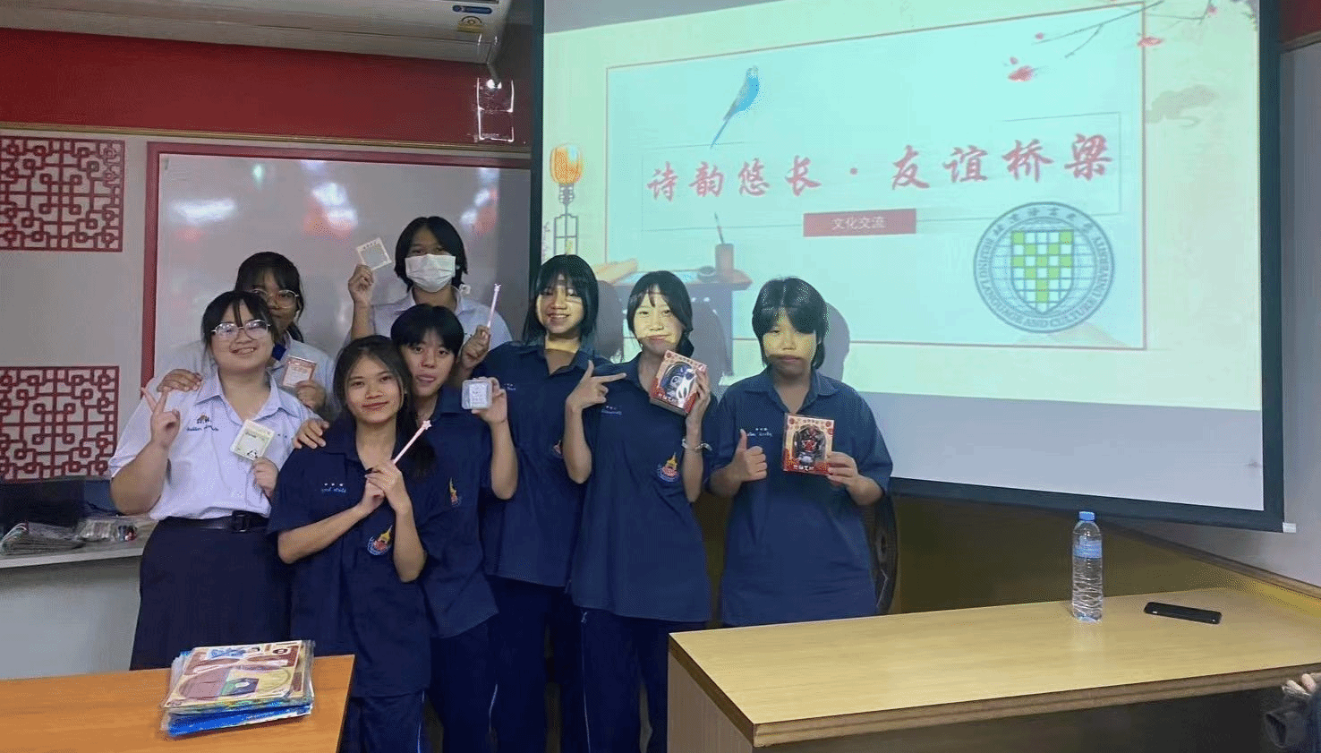 “诗韵悠长·友谊桥梁”暑期社会实践团队继在古巴的活动后,在泰国曼谷玛哈普塔拉皇家女子中学开展了一场别开生面的诗词文化交流活动。此次活动不仅加深了泰国学生对中国诗词文化的了解,也为中泰两国之间的文化交流搭建了一座坚实的桥梁。