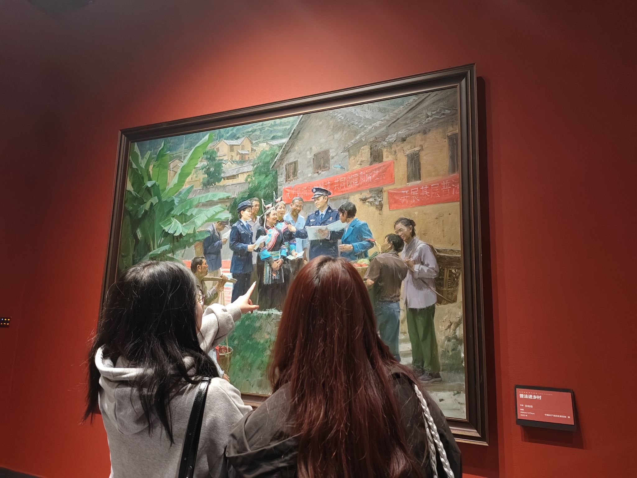 在中国共产党历史展览馆举办的“光辉历程 历史丹青——庆祝中华人民共和国成立75周年主题美术作品展览”中,共展出了120余件中国画、油画、版画、雕塑等主题性美术作品。通过参观,同学们不仅感受到了近年来主题性美术创作的丰硕成果,更深刻体会到党的百年光辉历程。十八大以来党和国家事业取得的伟大成就以及人民群众昂扬向上的精神风貌,让观展师生们深受鼓舞。
