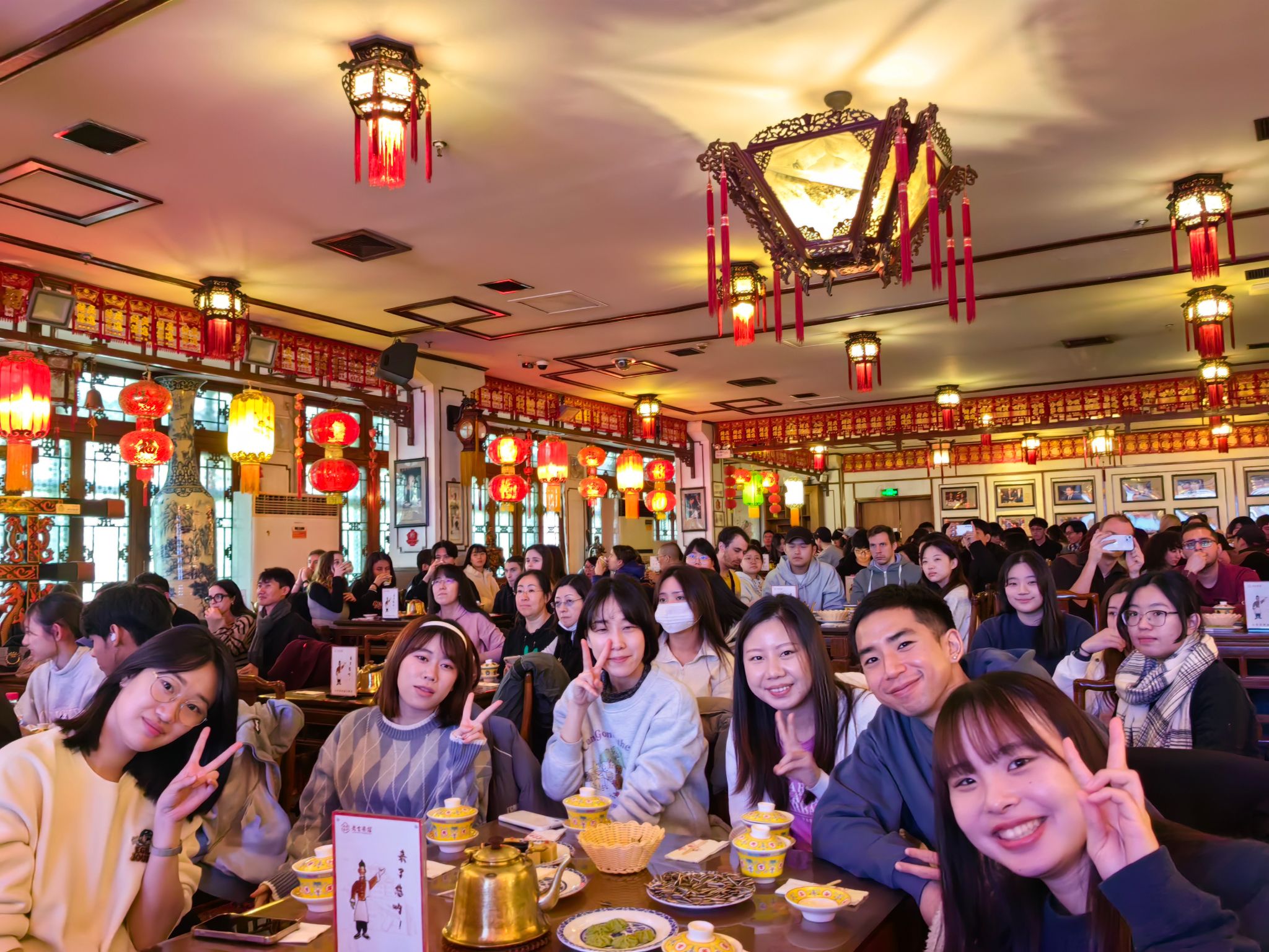 组织近300名国际学生前往老舍茶馆进行文化体验活动。在寒冷的北京冬季,同学们尽情享受了一场热情洋溢的文化盛宴。