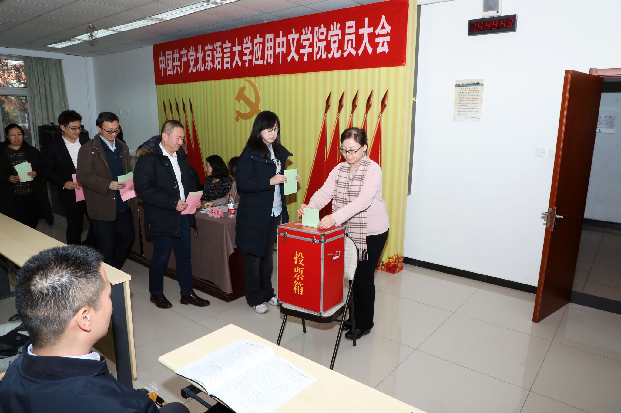 大会选举由总监票人李晨露主持,所有党员填写了选票,并以无记名方式投出了自己庄严的一票。监票人李燕、王艳严格监督了计票过程,计票人冷美雨、张菊萍、魏思远、余巧苓认真完成了计票工作。