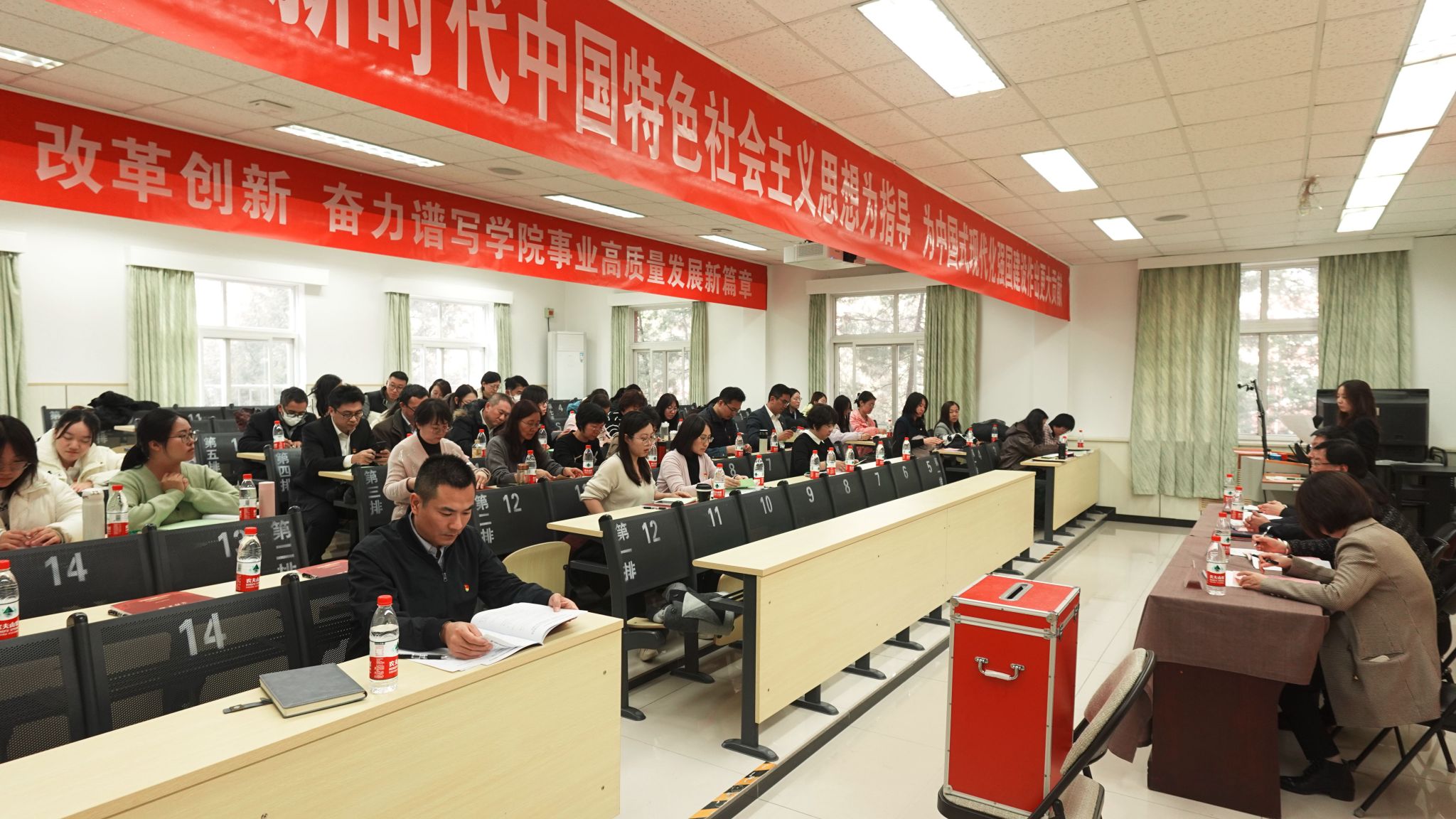 最后,报告强调全面推进学院事业高质量发展关键在党的领导,要坚持不懈用习近平新时代中国特色社会主义思想凝心铸魂,深入贯彻新时代党的建设总要求,履行好党委管党治党主体责任,建立健全加强党的全面领导的组织体系、制度体系、工作机制,切实推动学院各项事业高质量发展。一是坚持把政治建设摆在首位;二是坚持筑牢思想建设根基,把思想政治工作贯穿教书育人全过程;三是加强基层党组织建设,发挥党支部战斗堡垒和党员先锋模范作用;四是强化正风肃纪,营造学院风清气正的干事创业良好环境。
